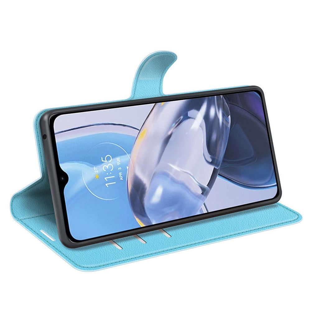 Classic Motorola Moto E22 leren flip Hoesje - Blauw
