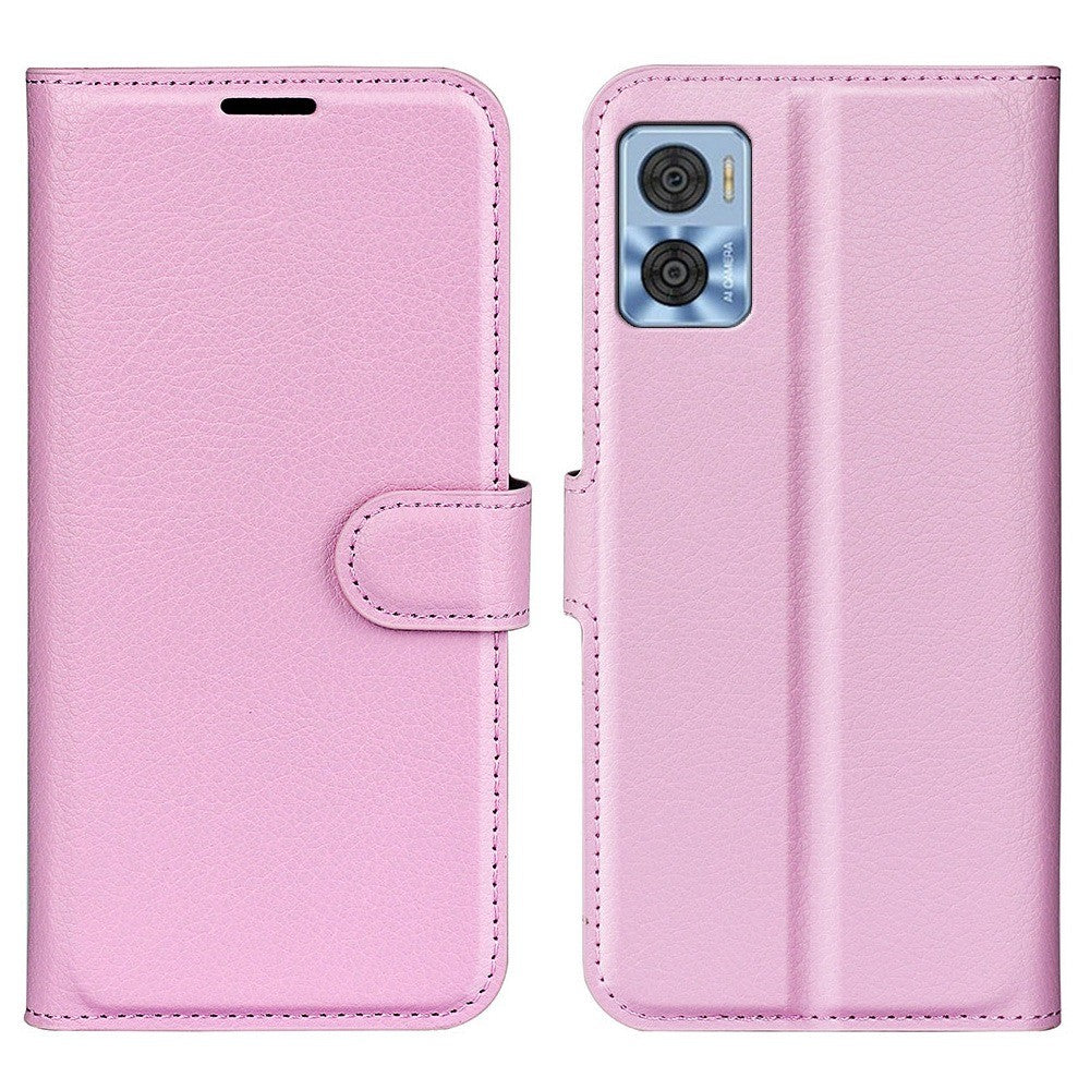 Classic Motorola Moto E22 leren flip Hoesje - Roze