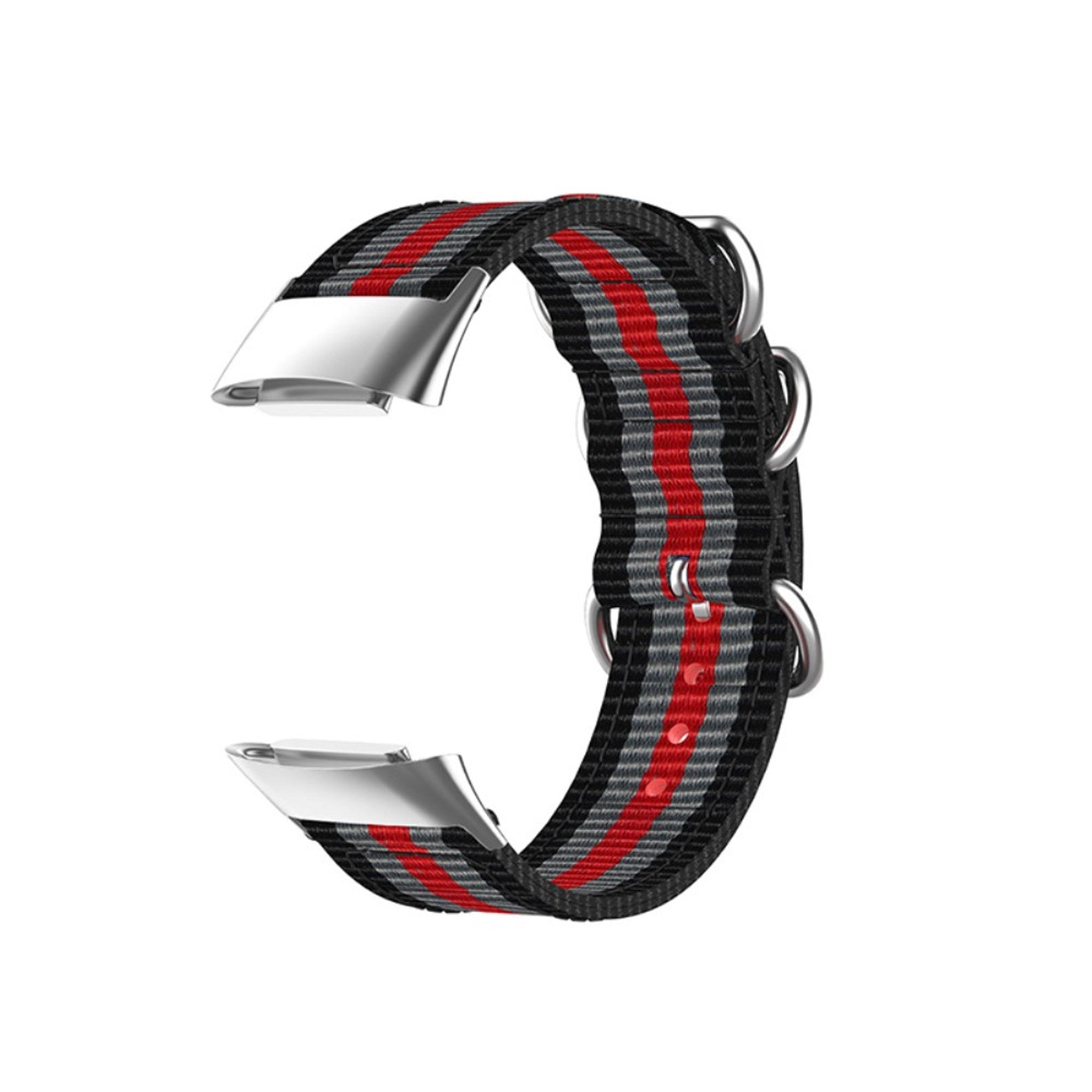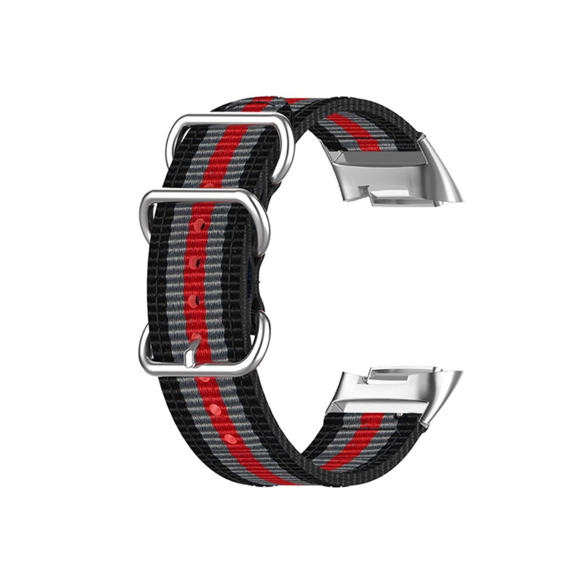 Fitbit Charge 5 elastische nylon horlogeband met zilveren gesp - Zwart / Grijs / Rood / Grijs / Zwart