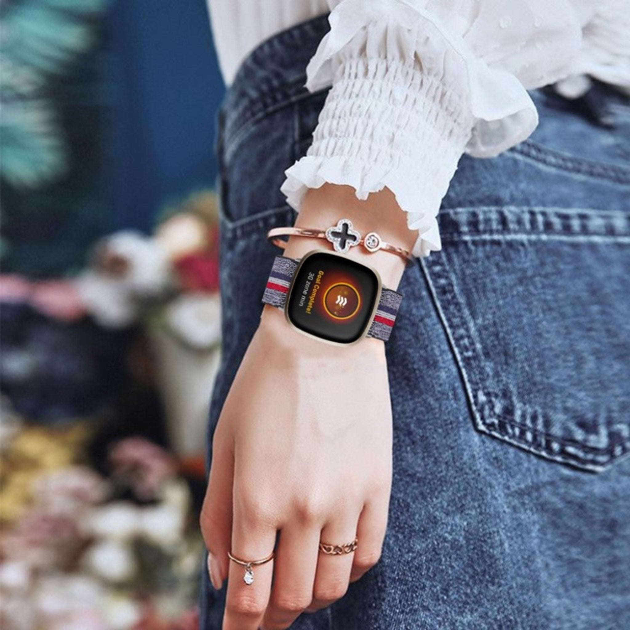 Fitbit Sense / Versa 3 nylon horlogeband met patroon - Blauw / Wit / Rood
