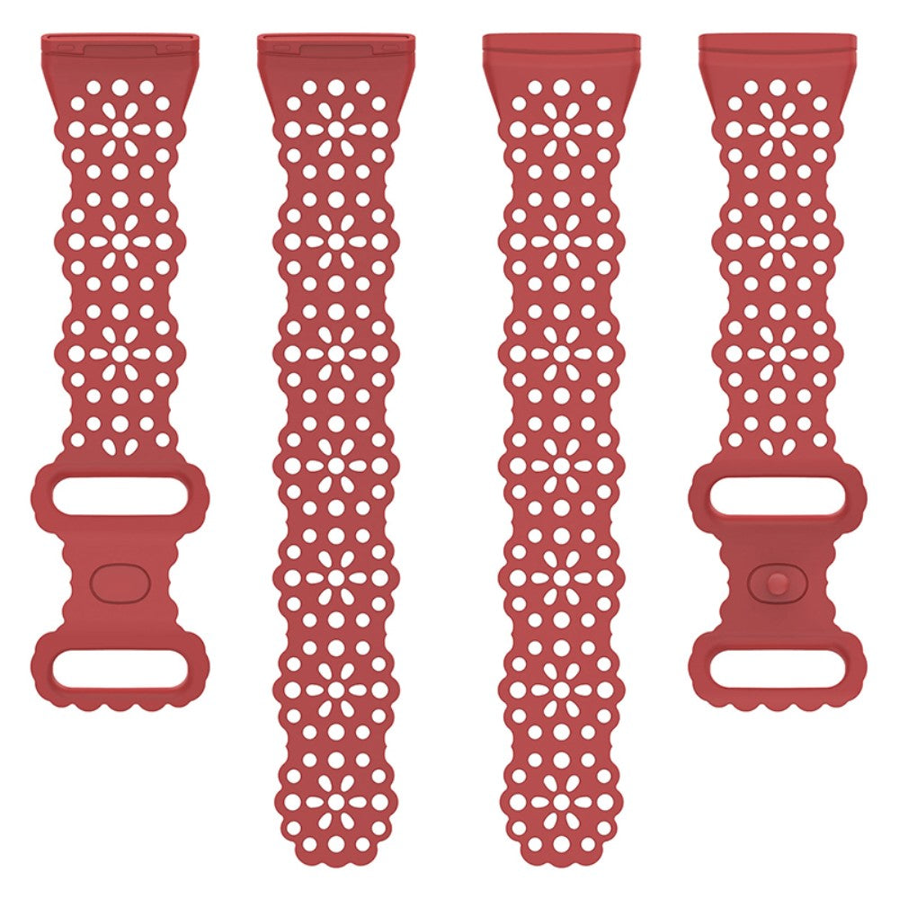 Fitbit Versa 4 / Sense 2 / Versa 3 / Sense kanten horlogebandje in bloemstijl - Rood