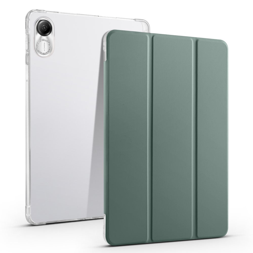 Honor Pad X8 Pro / Pad X9 Trifold Stand Tablet Hoesje Pen Slot Vegan Leather Transparent Flexible Back Cover - Midnight Green
