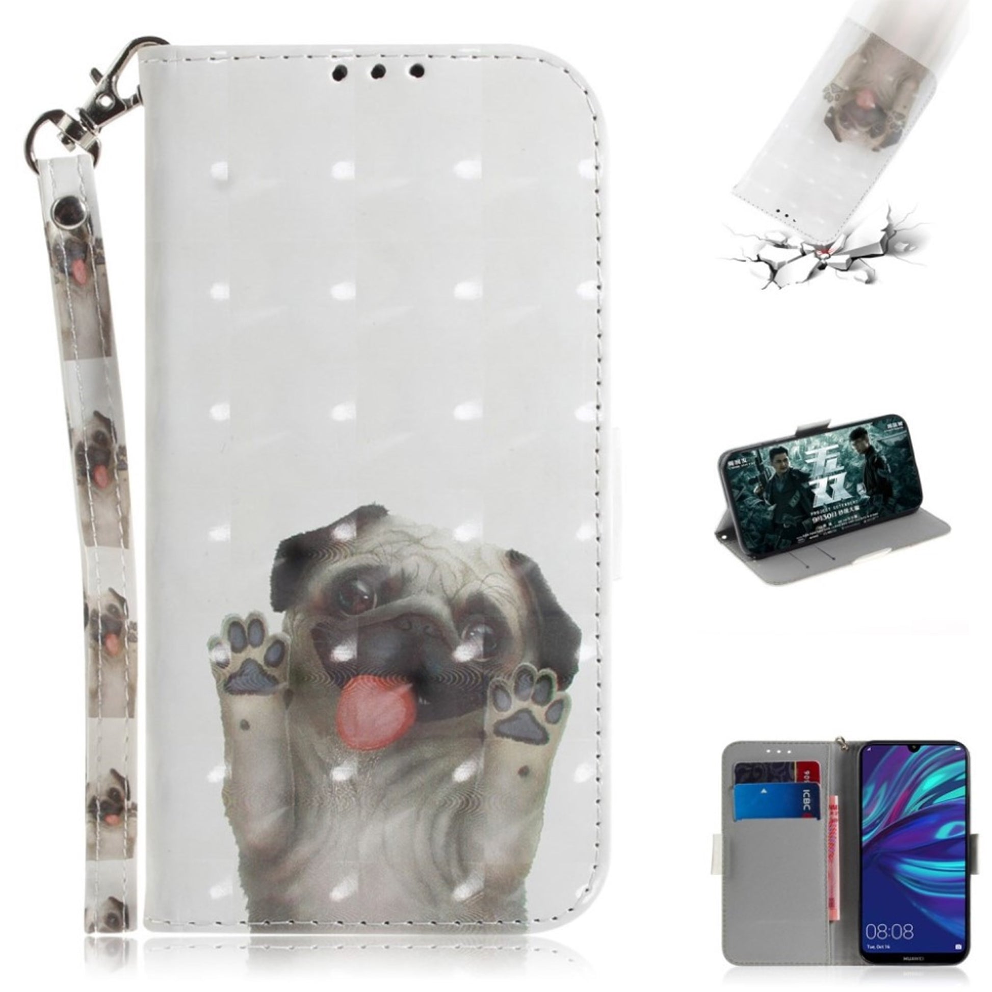 Huawei P30 Lite leren hoes met lichte spotinrichting - Hond