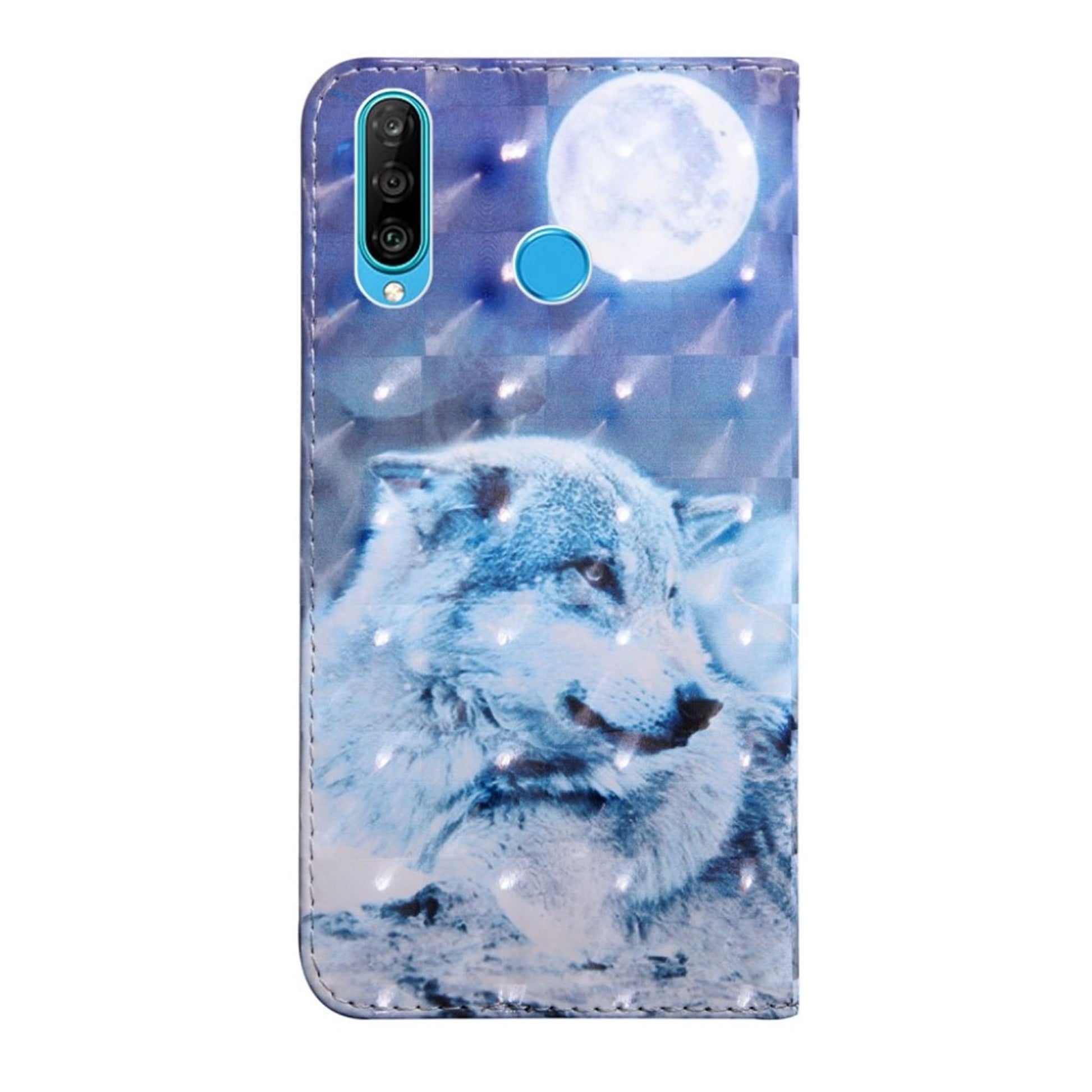 Huawei P30 Lite Patroon Leer Hoesje - Valkoinen Susi
