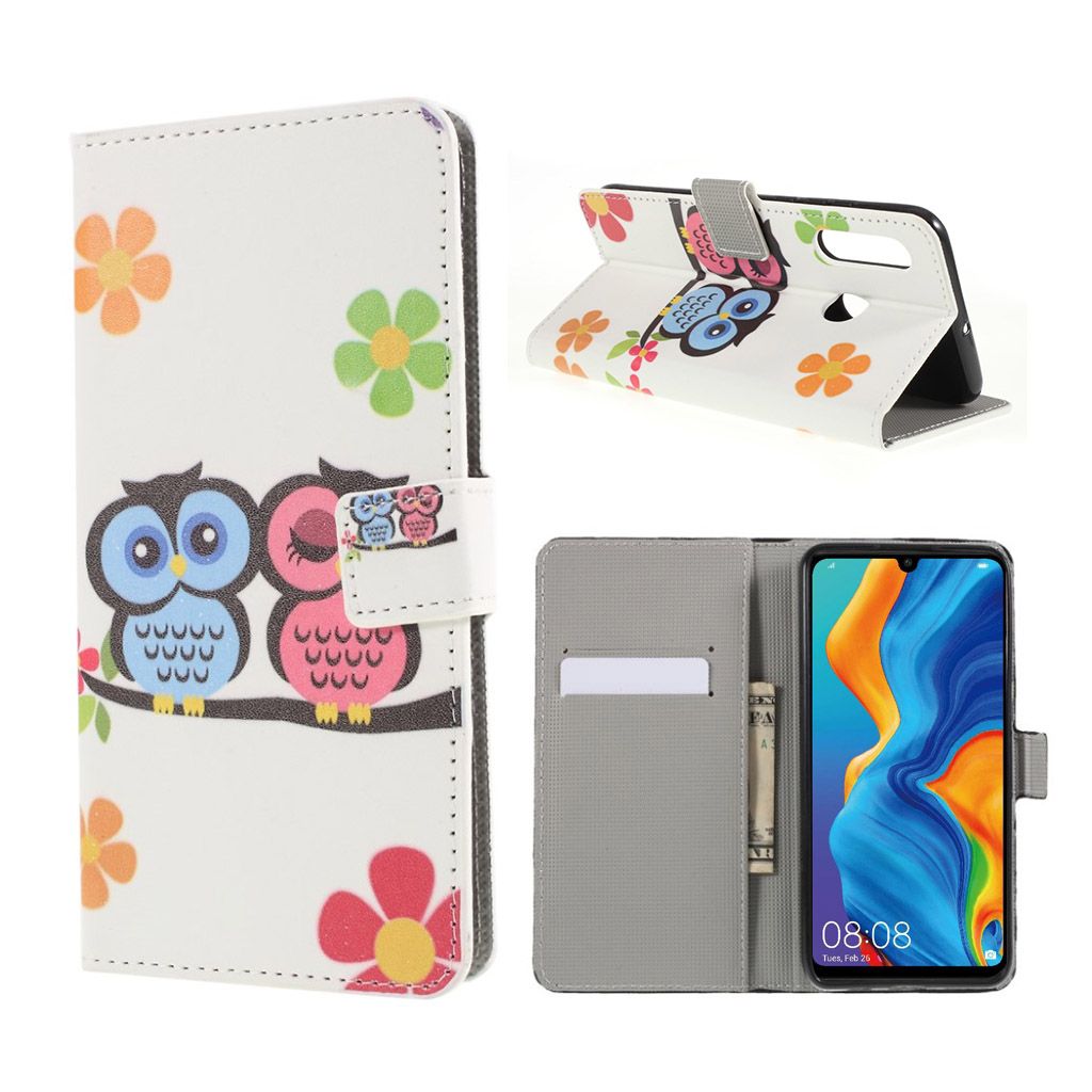 Huawei P30 Lite lederen flip hoes met patroon - Verliefde Uilen