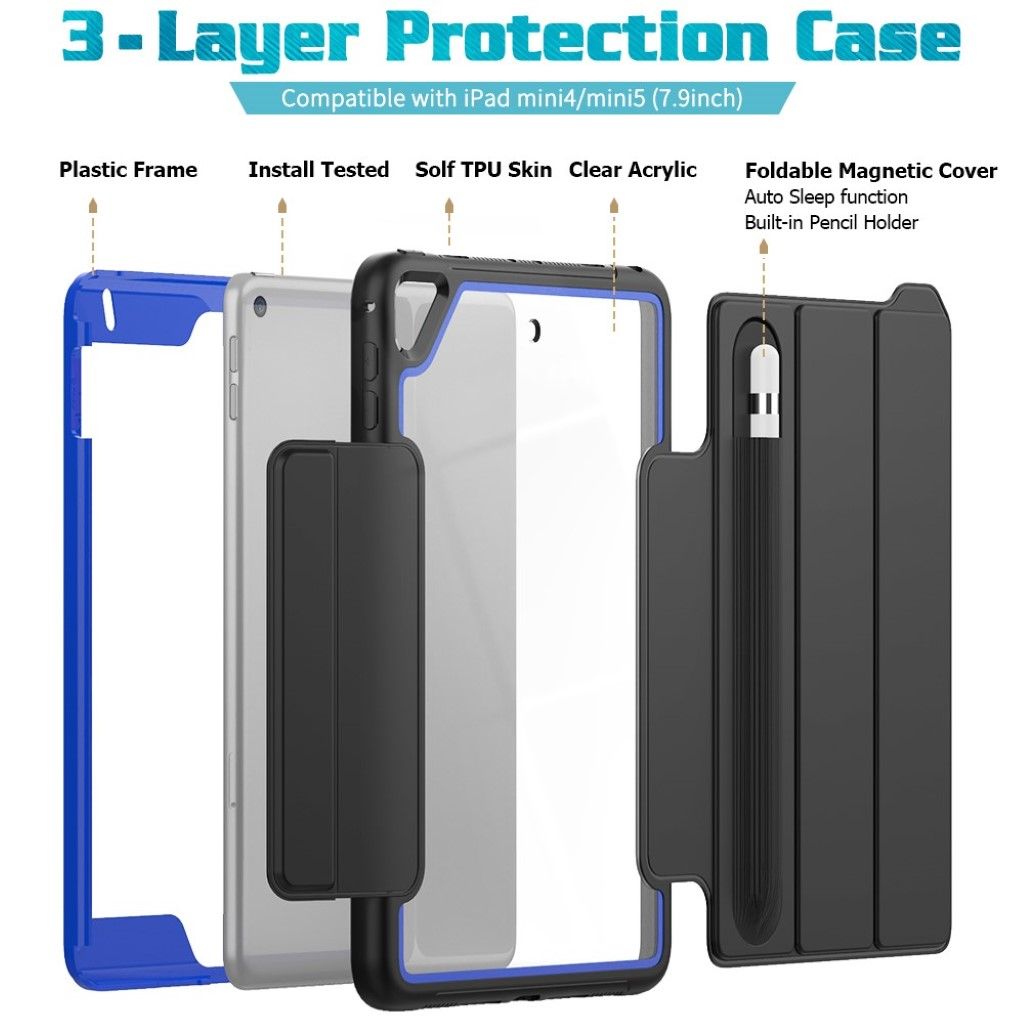 iPad Mini (2019) elegante tri-vouw hoes - Zwart / Donkerblauw