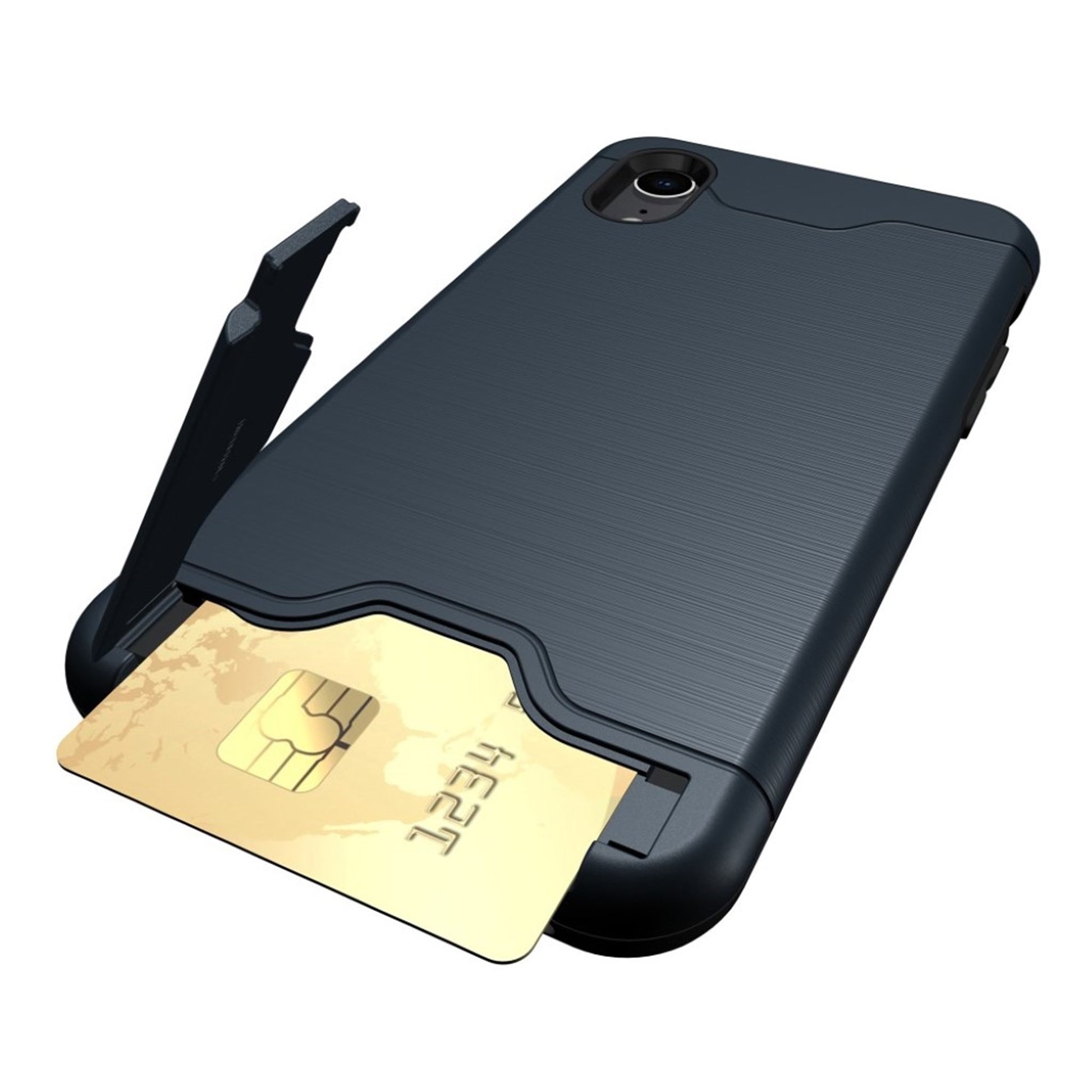 iPhone 9 beskyttelses Hoesje av hybrid materiale med børstet tekstur - mørke blå