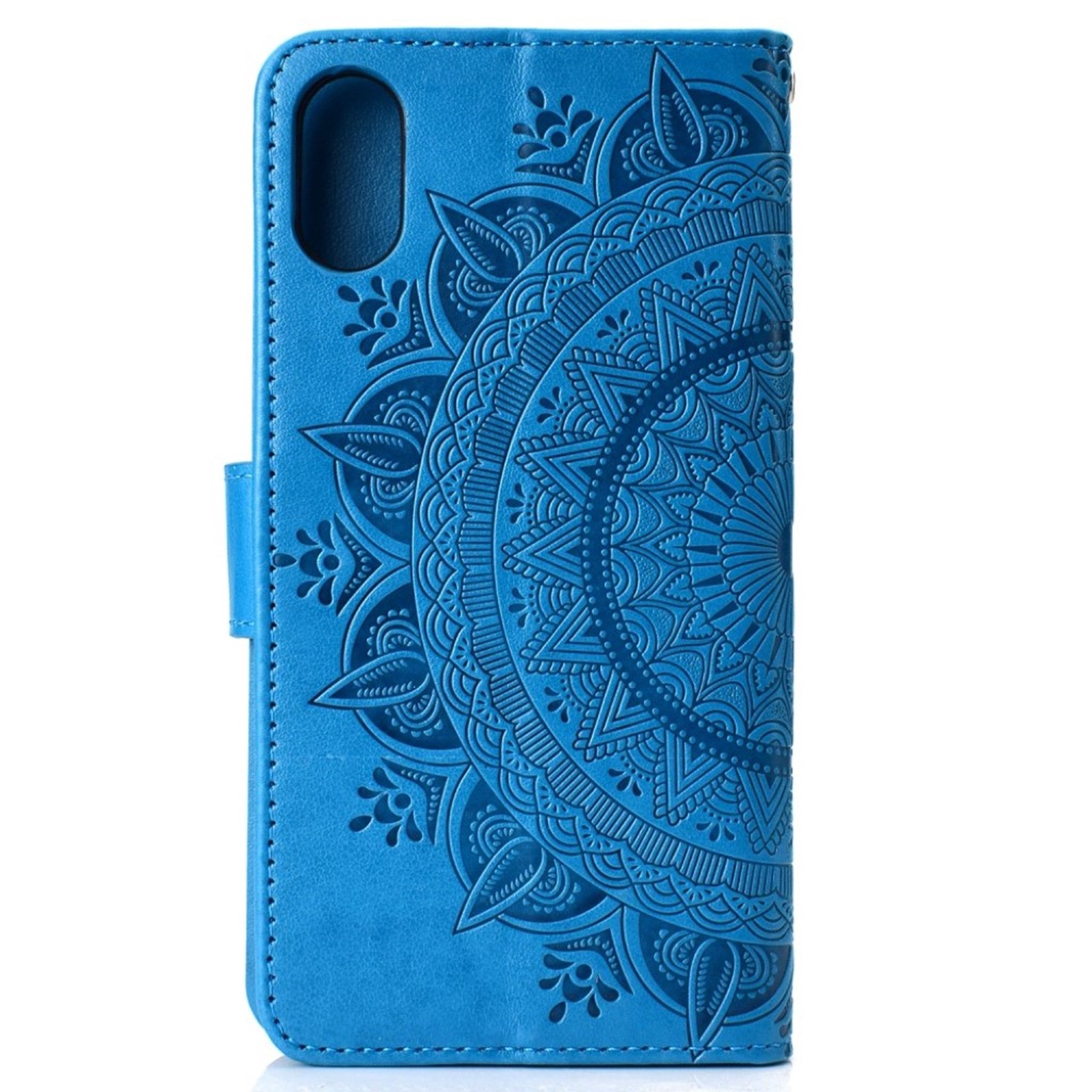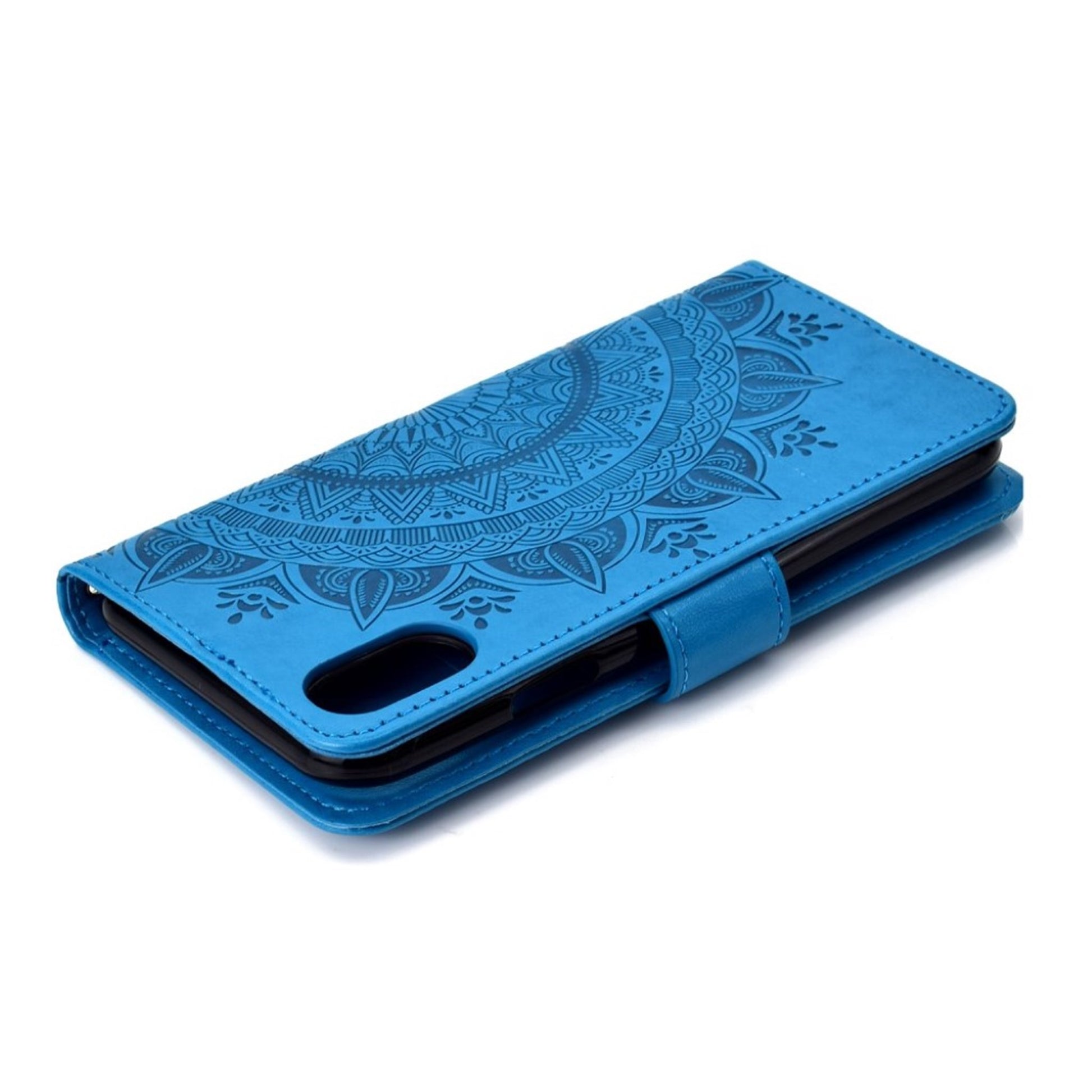 iPhone Xr imprinted mandala Patroon Leer flip Hoesje - Blauw