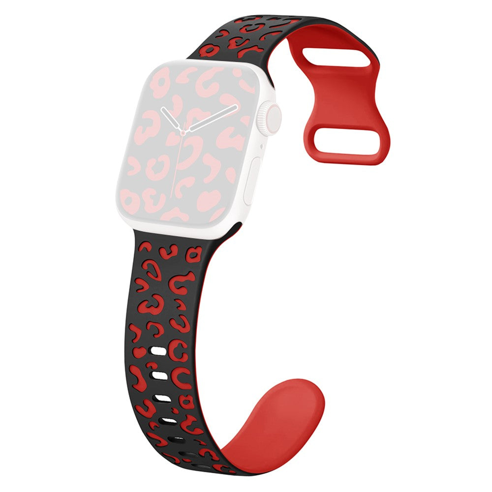 KALEBOL Luipaard Siliconen Bandje Apple Watch Series 10 42mm Dual Color Strap - Zwart + Rood