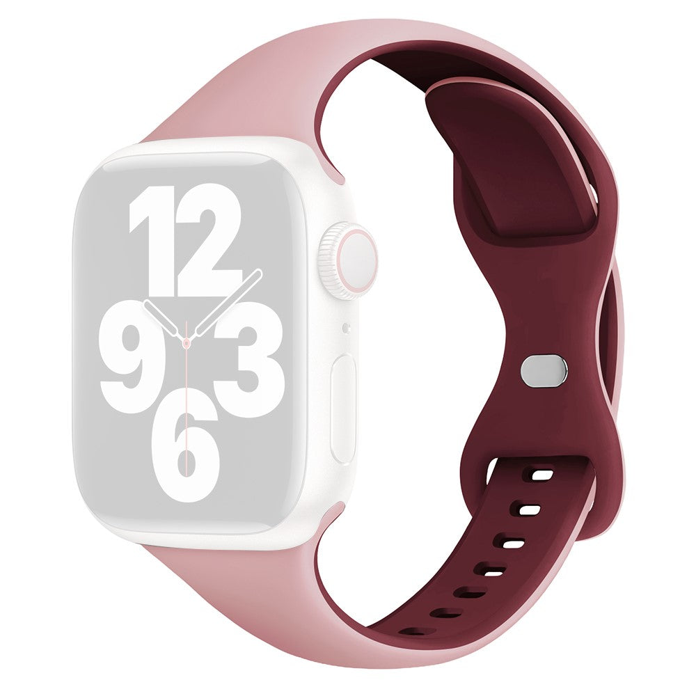 KALEBOL Siliconen horlogebandje Apple Watch Series 10 42mm met vlindergesp - Roze + Wijnrood