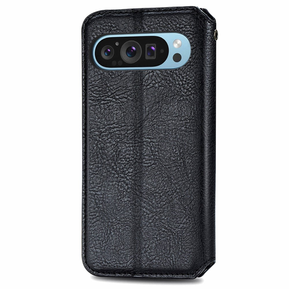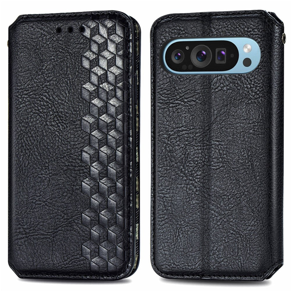 Lederen etui met een stijlvolle ruitvormige opdruk voor Google Pixel 9 / Google Pixel 9 Pro - Zwart
