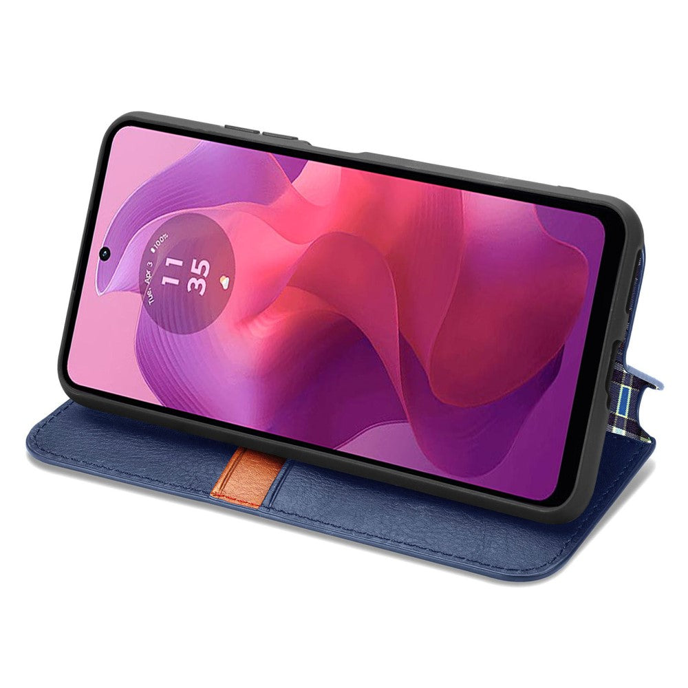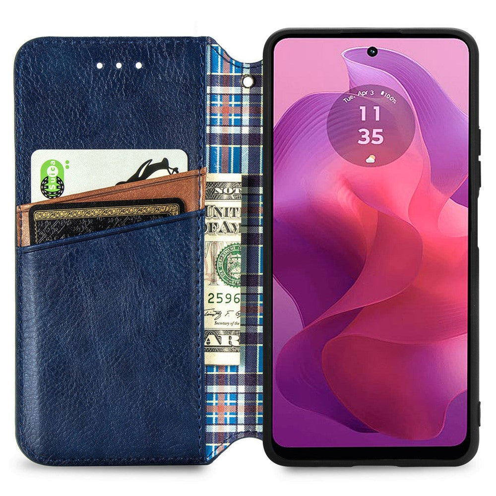 Lederen etui met een stijlvolle ruitvormige opdruk voor Motorola Moto G24 / Motorola Moto G04 - Blauw