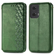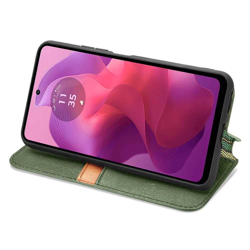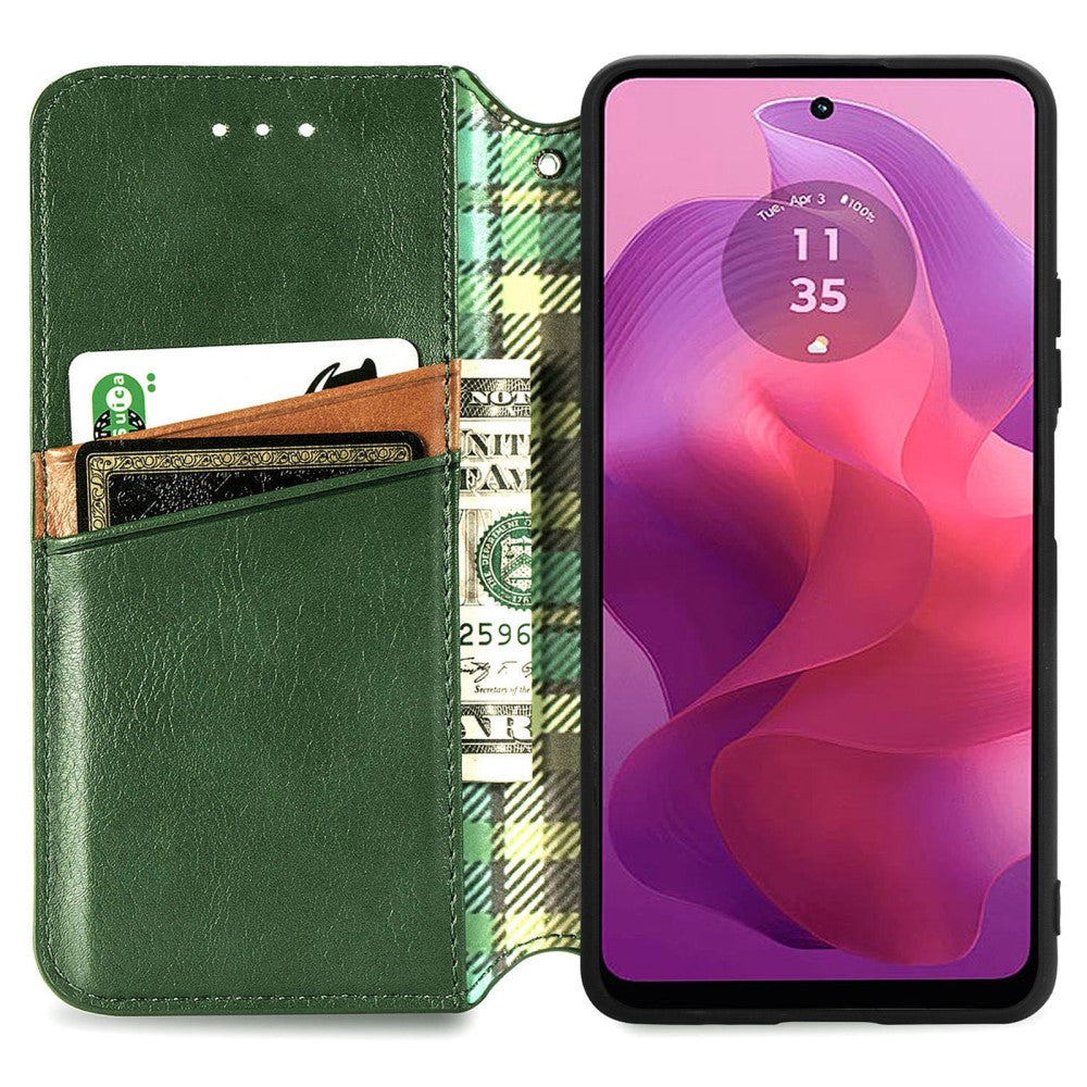 Lederen etui met een stijlvolle ruitvormige opdruk voor Motorola Moto G24 / Motorola Moto G04 - Groen