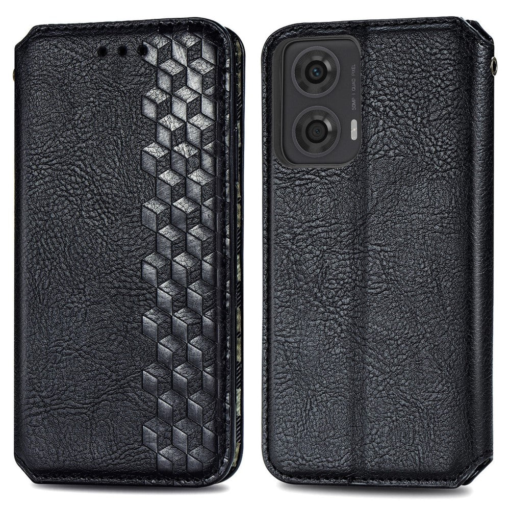 Lederen etui met een stijlvolle ruitvormige opdruk voor Motorola Moto G24 / Motorola Moto G04 - Zwart