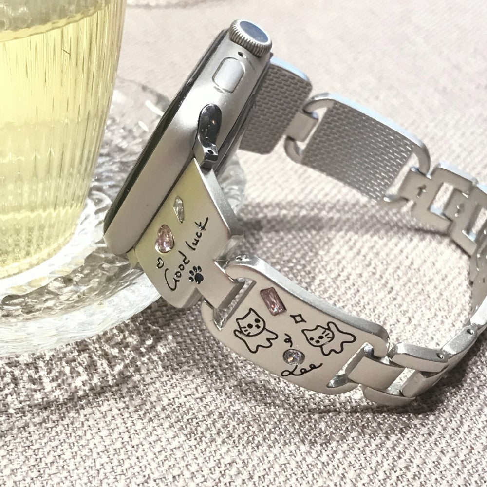 Metalen horlogebandje Apple Watch Series 10 42mm Kattenpatroon - Zilver