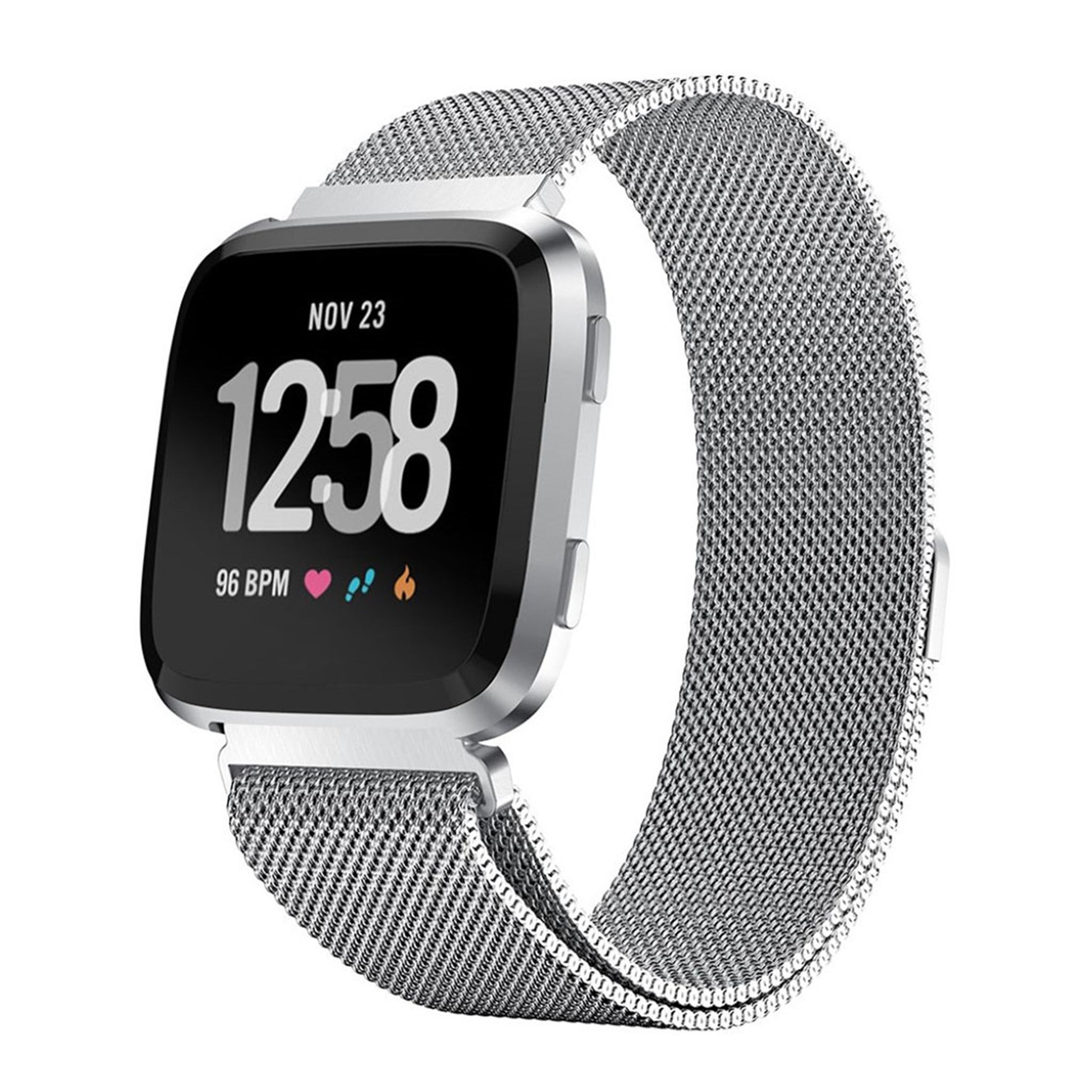 Milanese Fitbit Versa Roestvrij Staal Horlogebandje - Maat: L / Silver