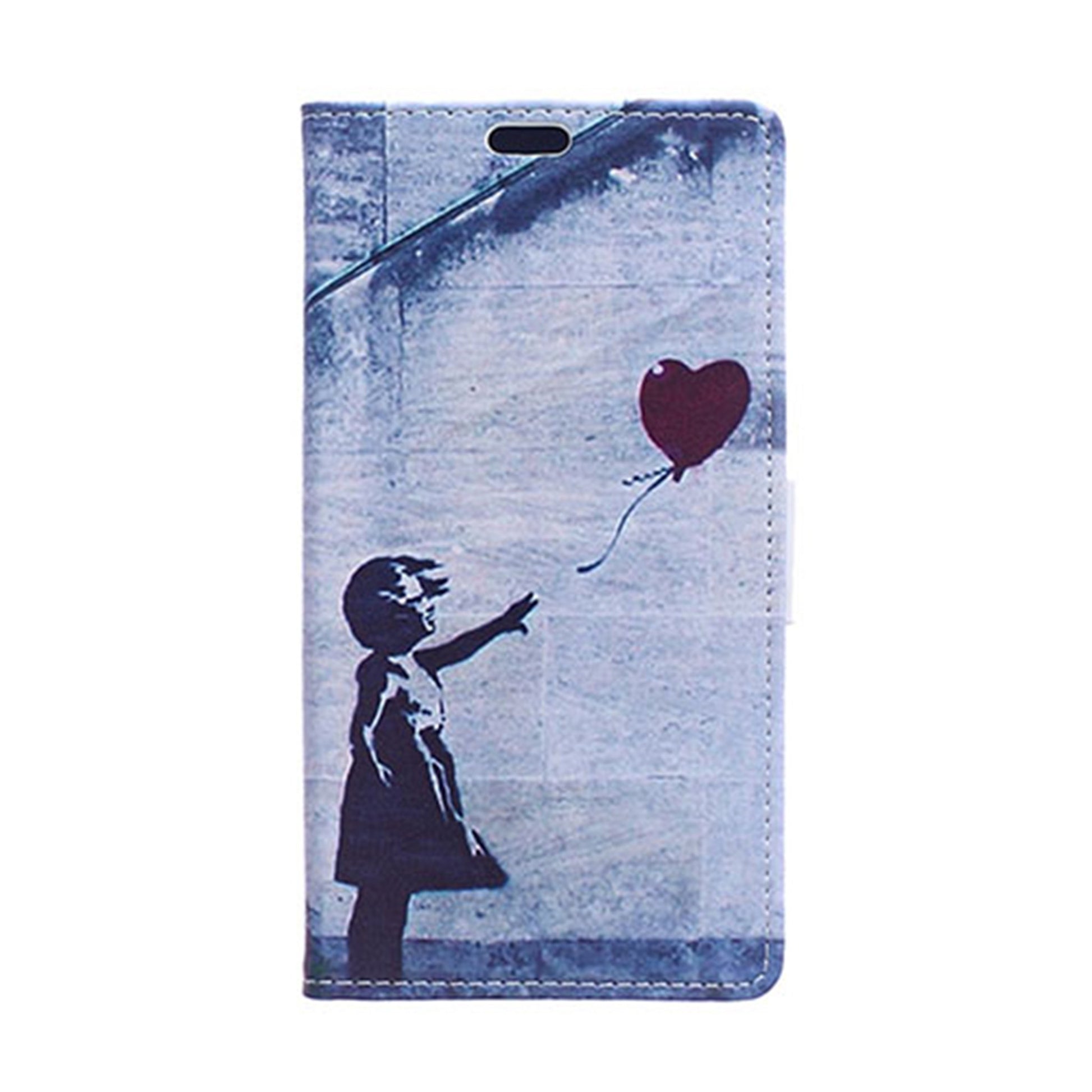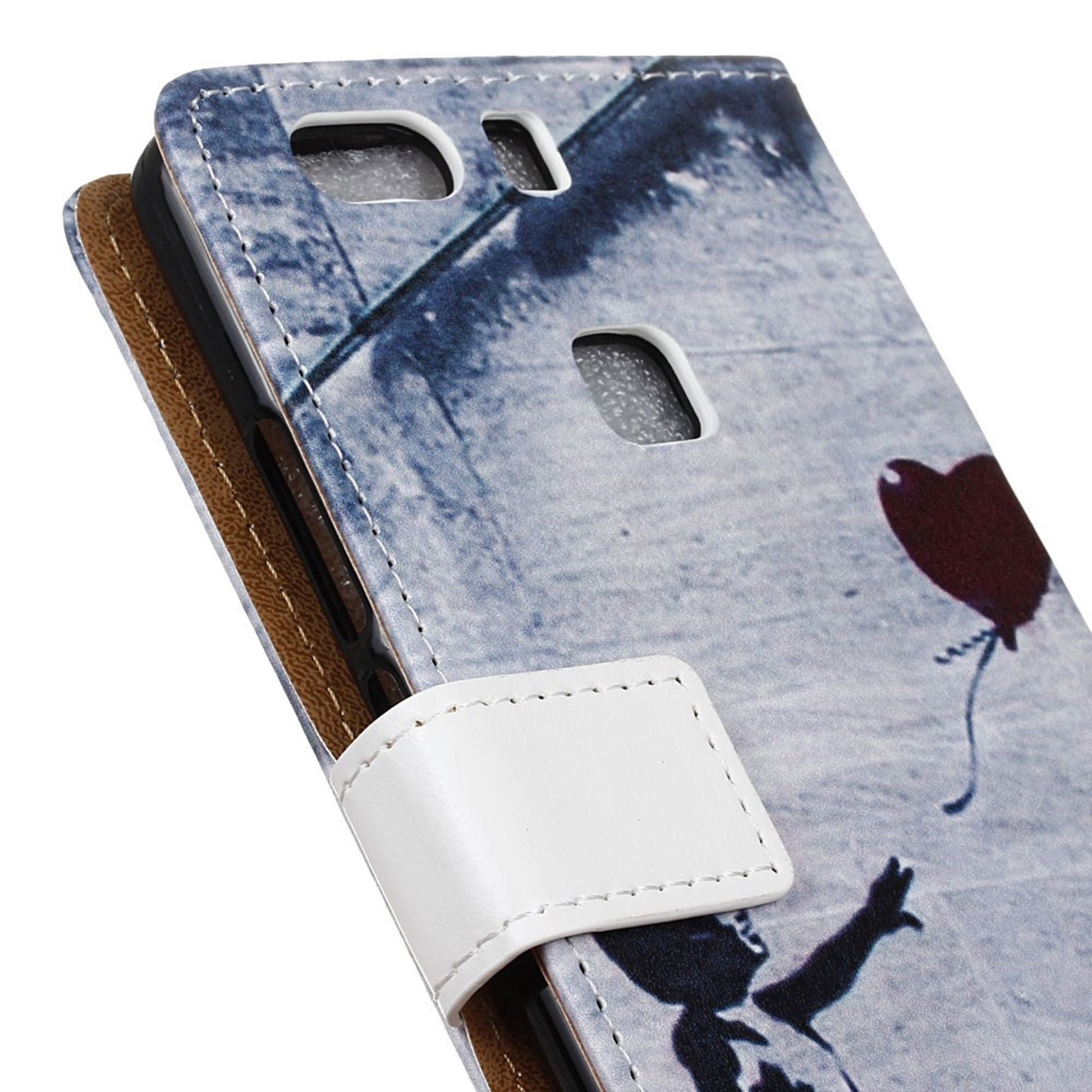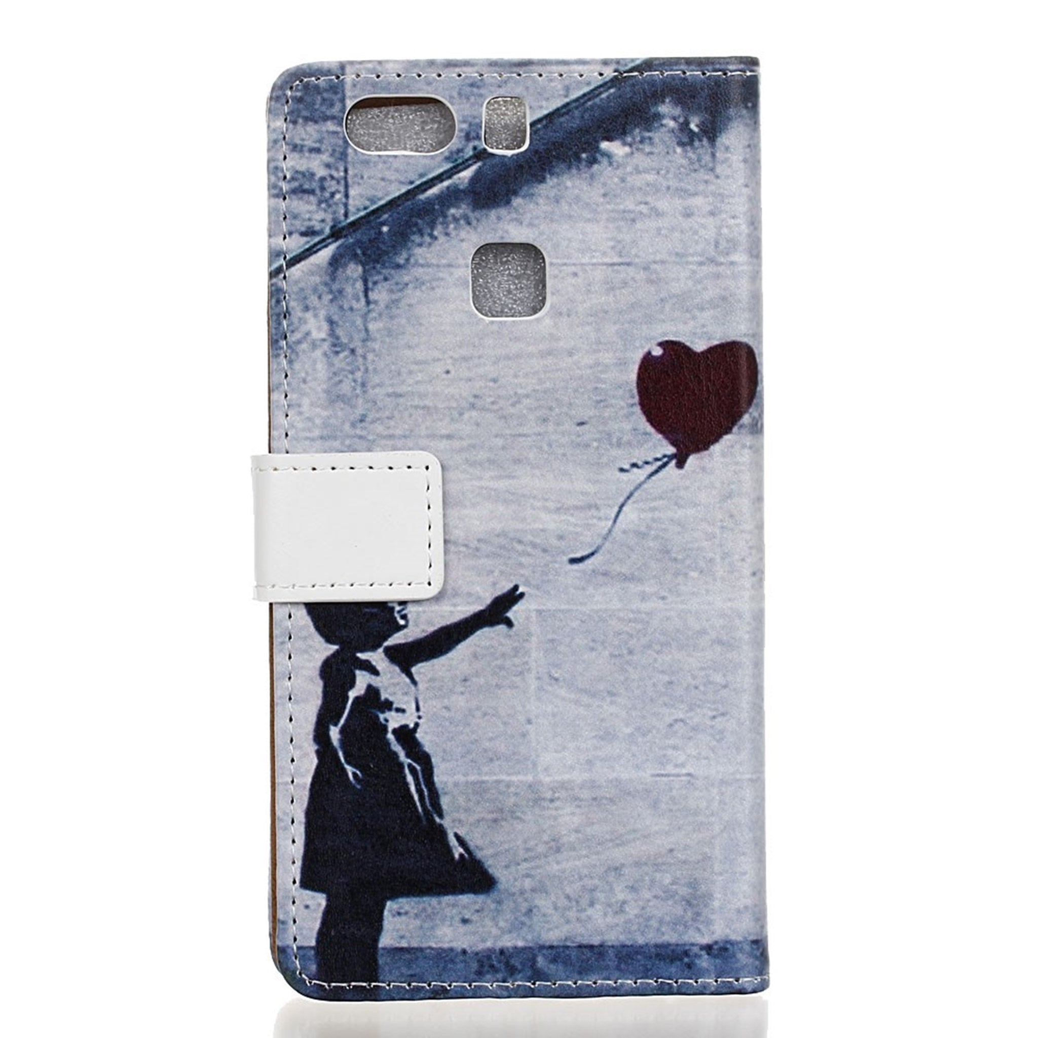 Moberg Huawei P9 Plus PU Leer Flip Hoesje - Girl Releasing Heart Balloon / Blauw