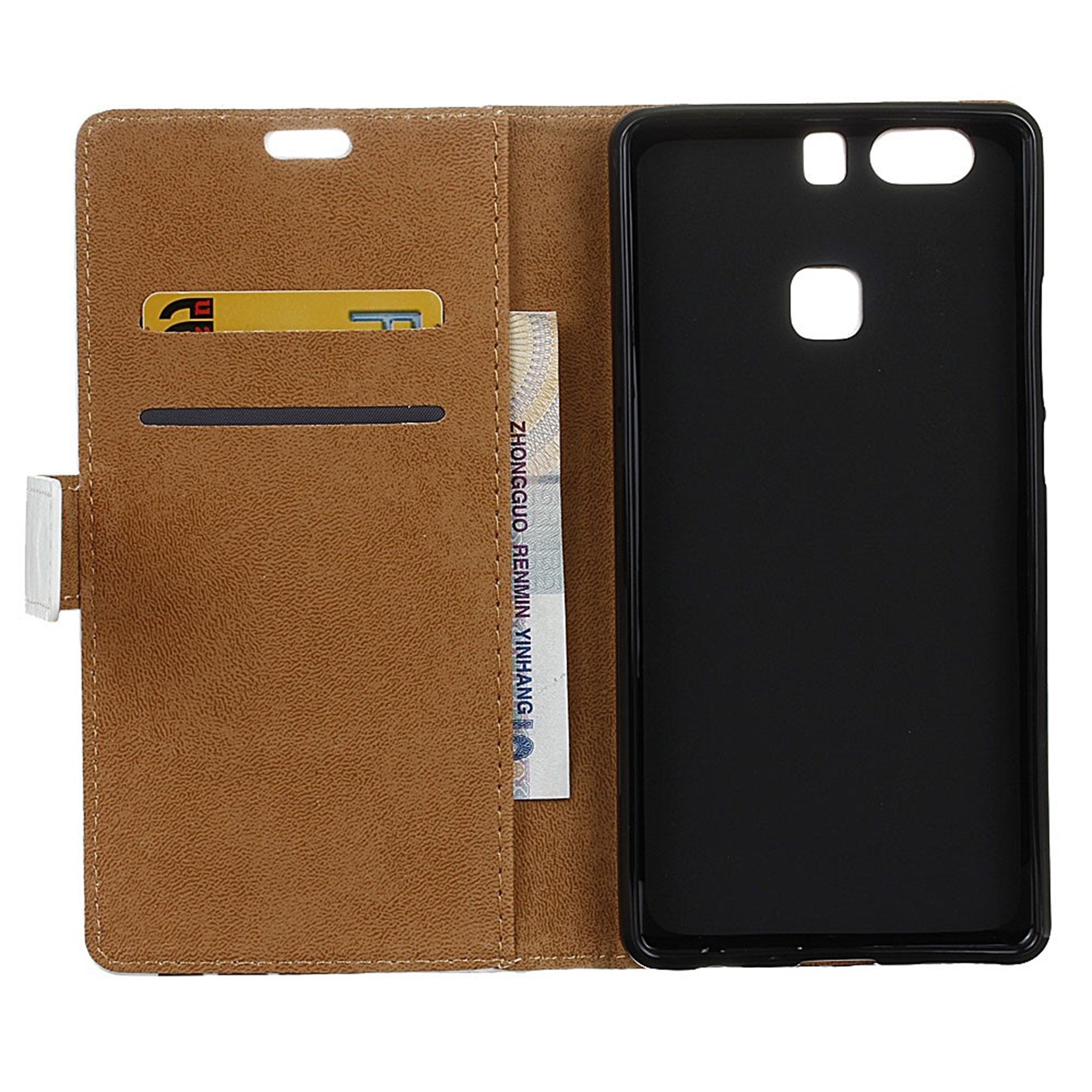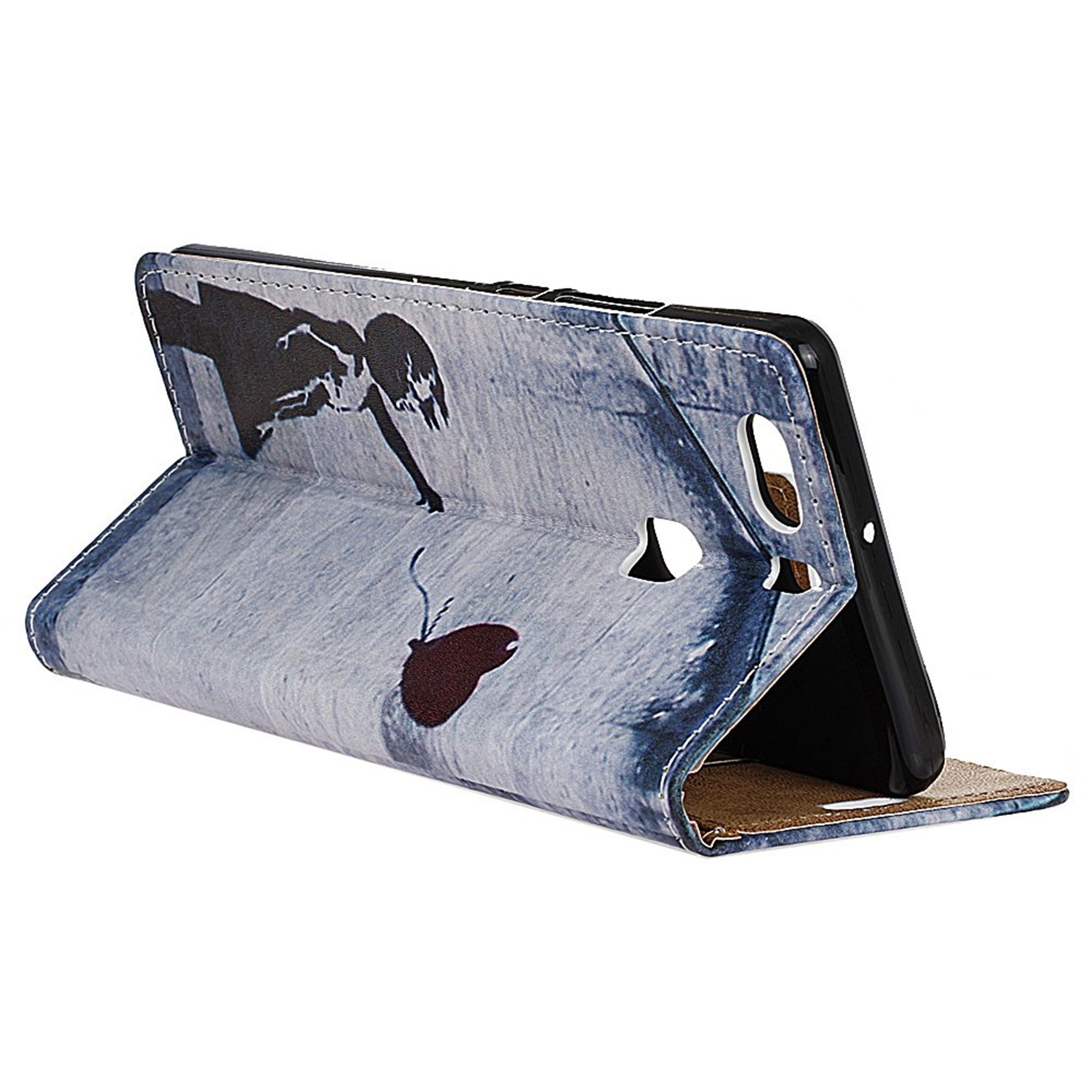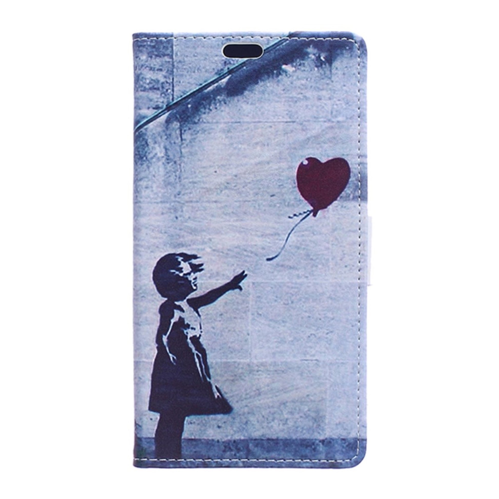 Moberg Huawei P9 Plus PU Leer Flip Hoesje - Girl Releasing Heart Balloon / Blauw