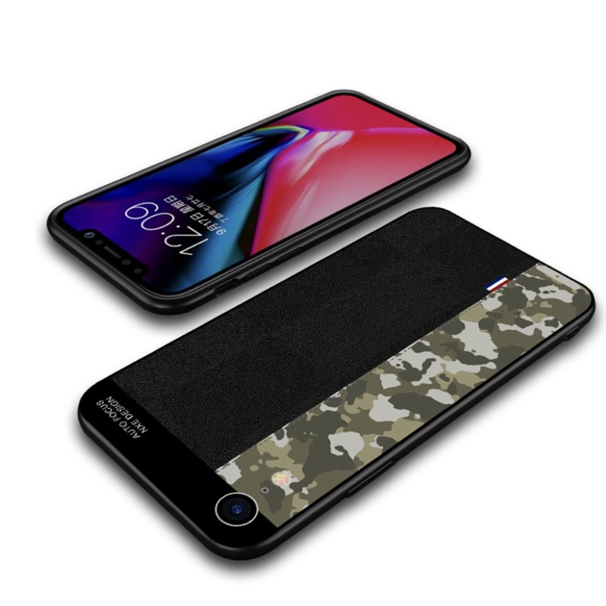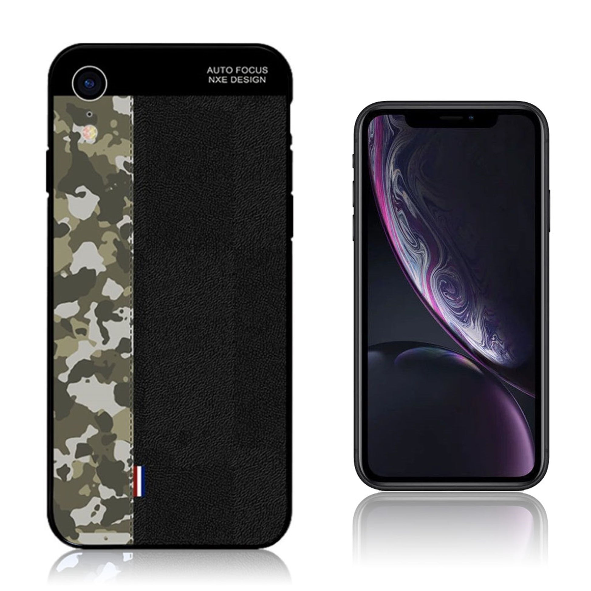 NXE iPhone Xr camouflage Patroon splicing Hoesje - Leger Groen Camouflage / Black