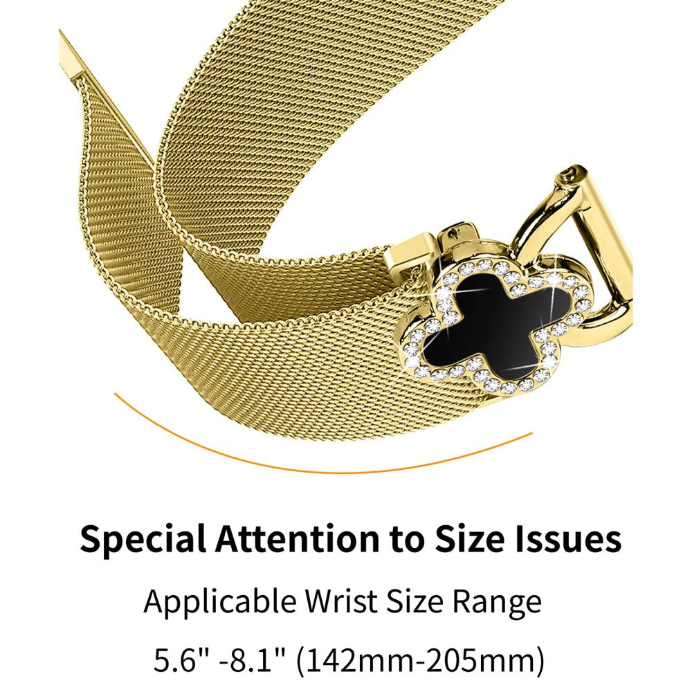 Samsung Galaxy Watch3 41 mm Milanese Band Gegalvaniseerd Roestvrij Staal Horlogebandje Klaver Decor, Maat: S - Goud / Zwart