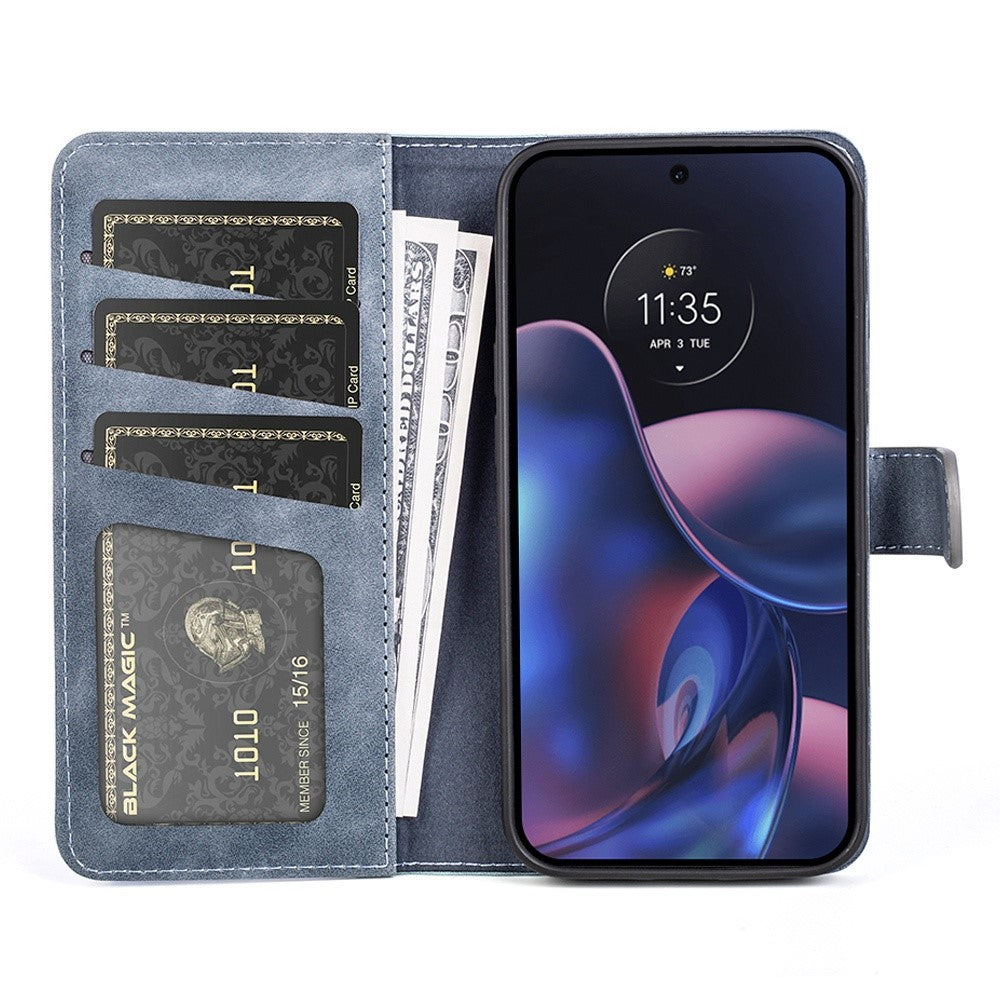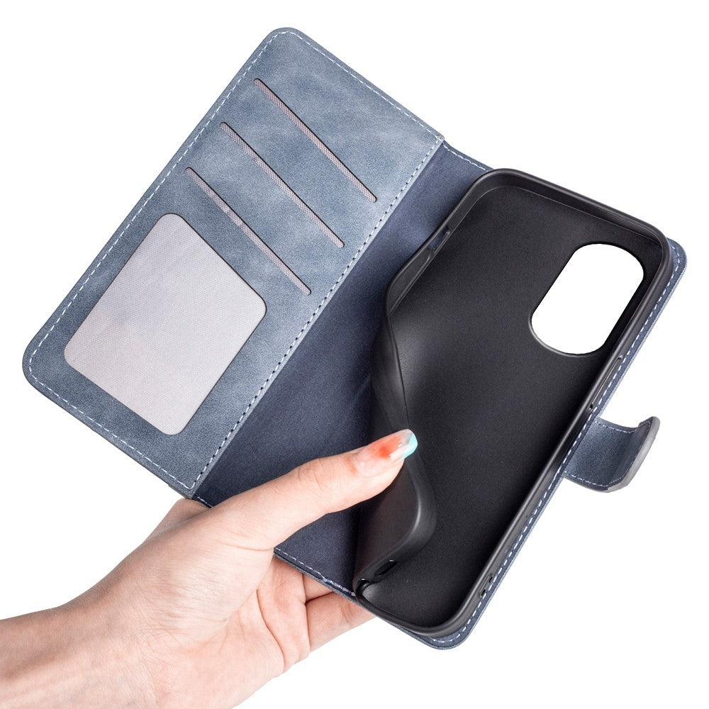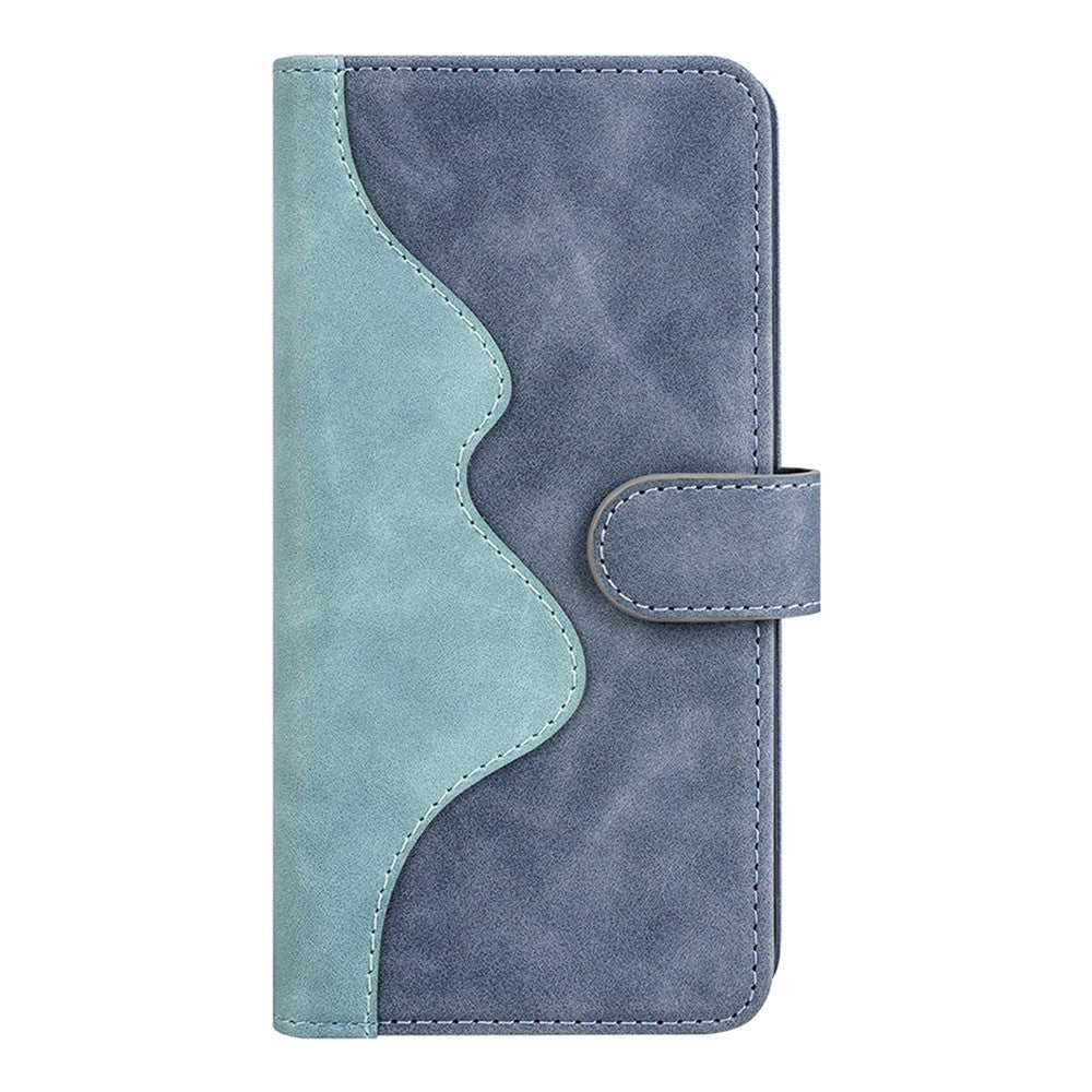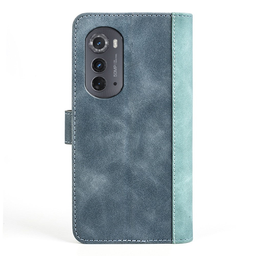 Tweekleurige leren flip case voor Motorola Moto Edge 2022 - Blauw