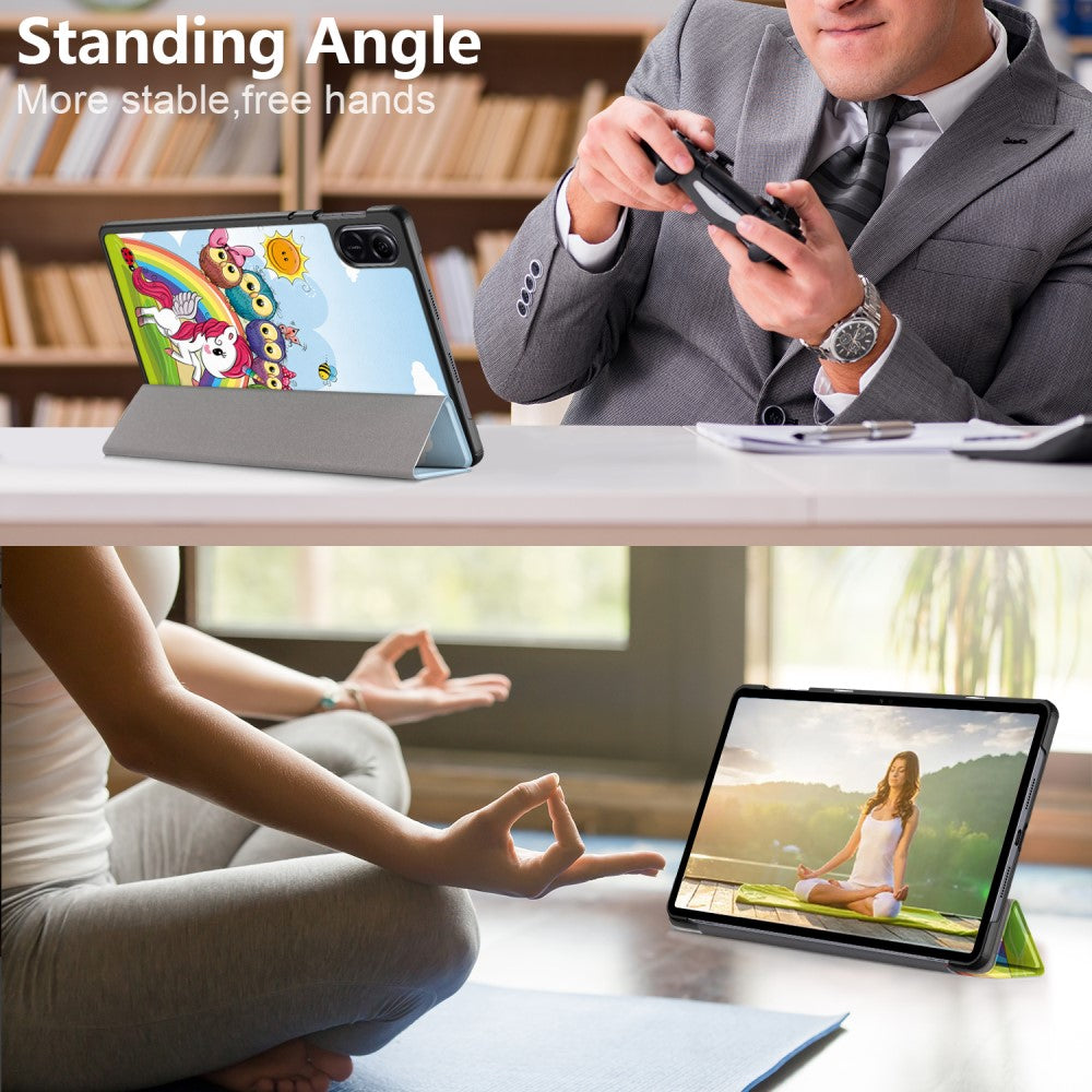 Vegan lederen tablet hoesje Honor Pad X9 / Pad X8 Pro, patroon afdrukken Trifold Standaard Folio beschermhoes - Schattig Paard