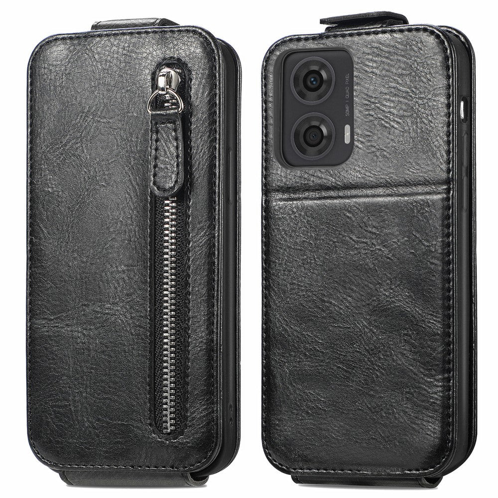 Verticale flip-telefoonhoes met rits voor Motorola Moto G24 / Motorola Moto G04 - Zwart