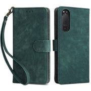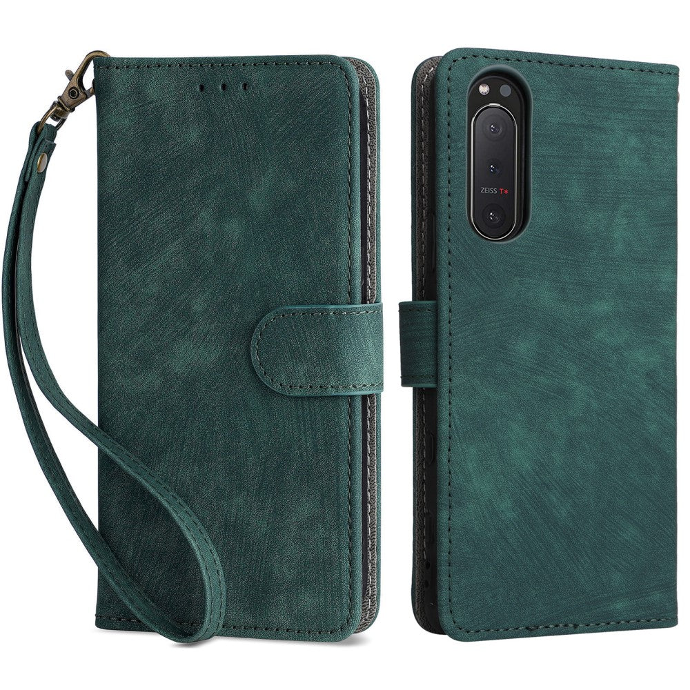 Voor Sony Xperia 5 II Portemonnee PU Leren Stand RFID Blokkerende Telefoonhoes met Riem - Groen