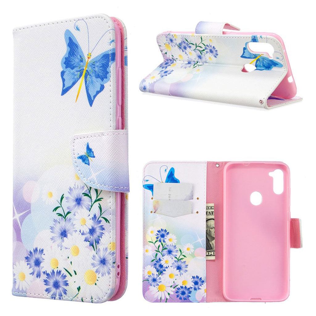 Wonderland Samsung Galaxy A11 / Samsung Galaxy M11 flip Hoesje - Vlinder En Madeliefje